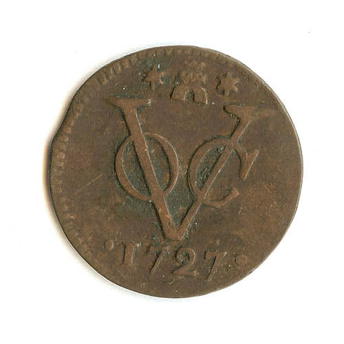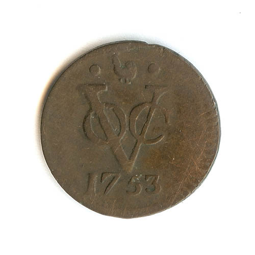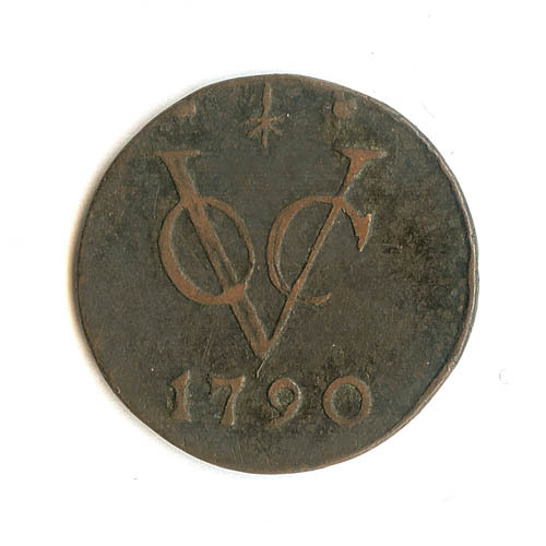 Munt met op de voorzijde VOC met jaartal, keerzijde ...