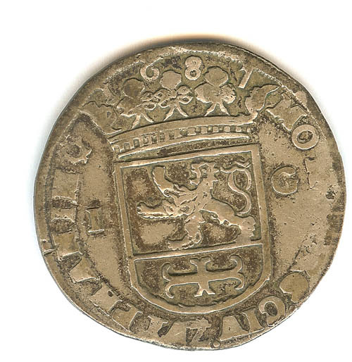 Zes stuiver met op de voorzijde zeilschipmet omschri...