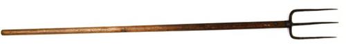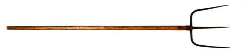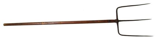 Mestvork van metaal met houten steel gebruikt om vas...