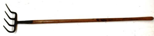 Hooivork van metaal en houten steel gebruikt om hooi...