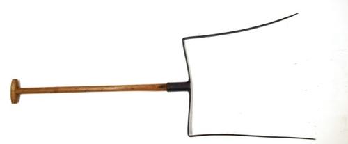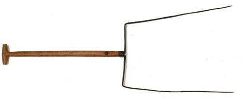 Cichoreihark van metaal met houten steel gebruikt om...