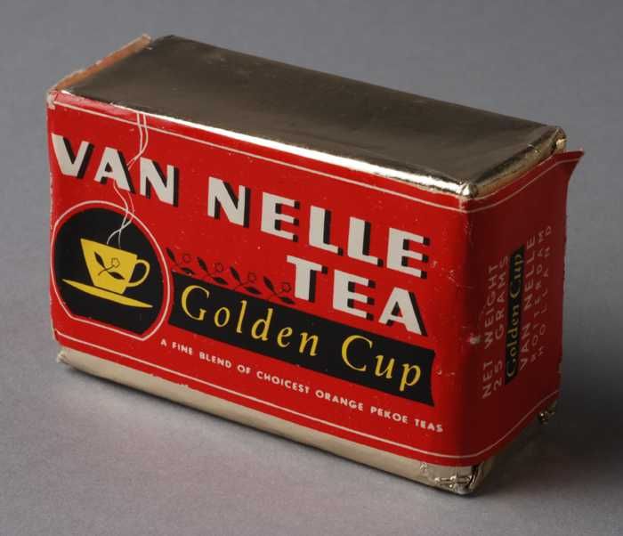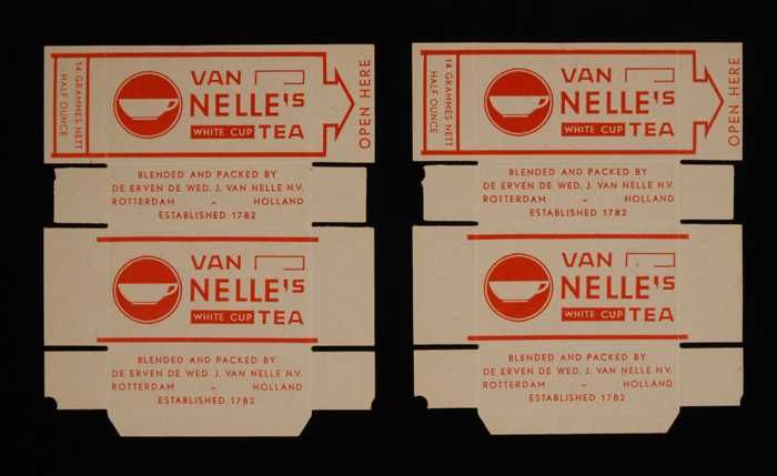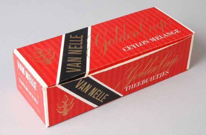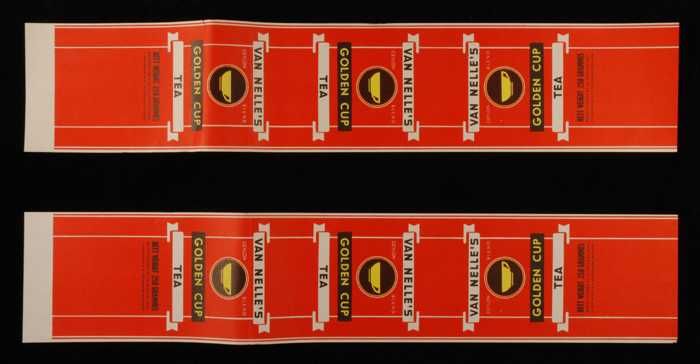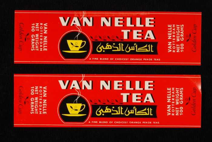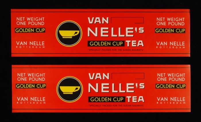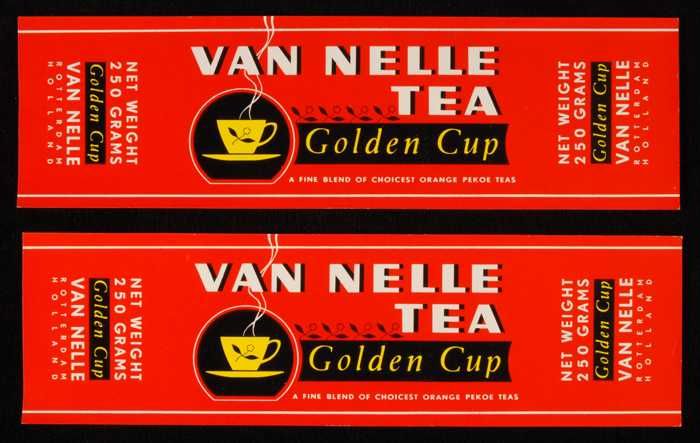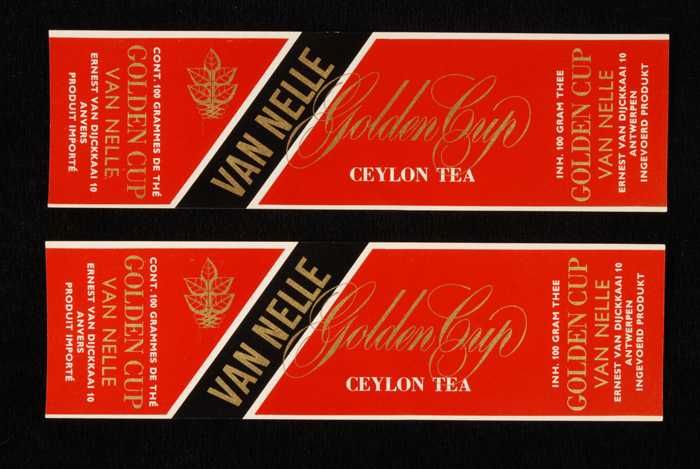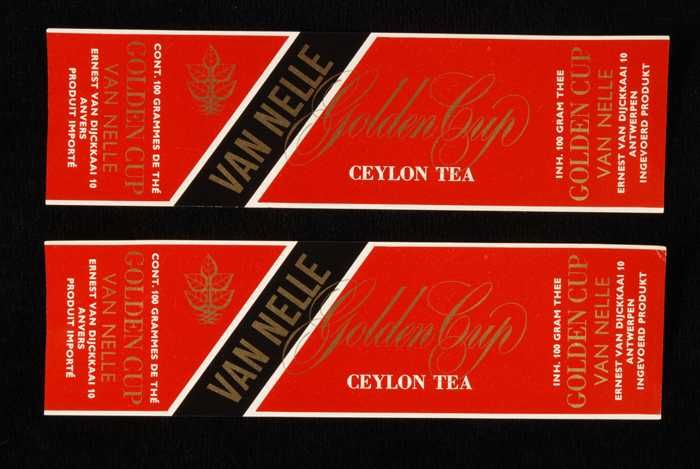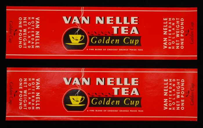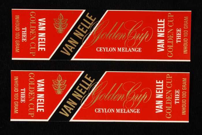 Twee rode labels VAN NELLE'S GOLDEN CUP THEE, grove ...