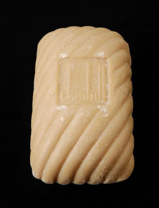 Ongebruikt stuk geparfumeerde beige zeep, geribbeld,...