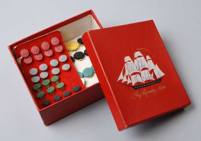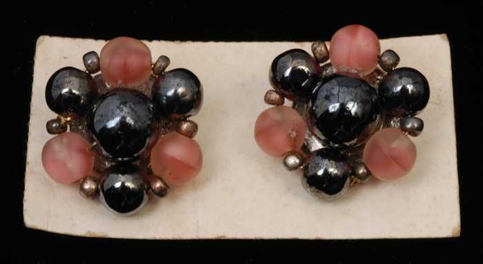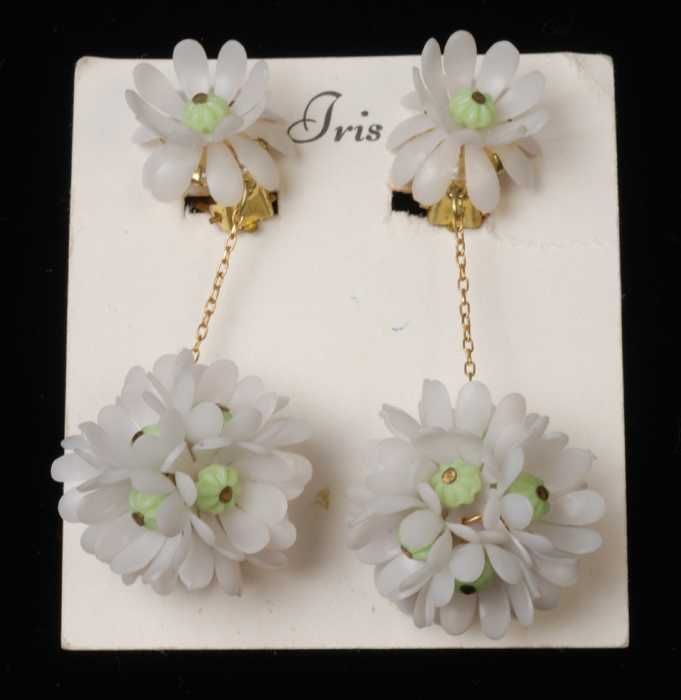 Paar oorbellen, clip met druiventros van wit glazen ...