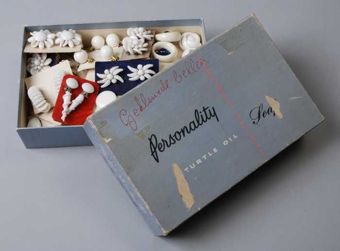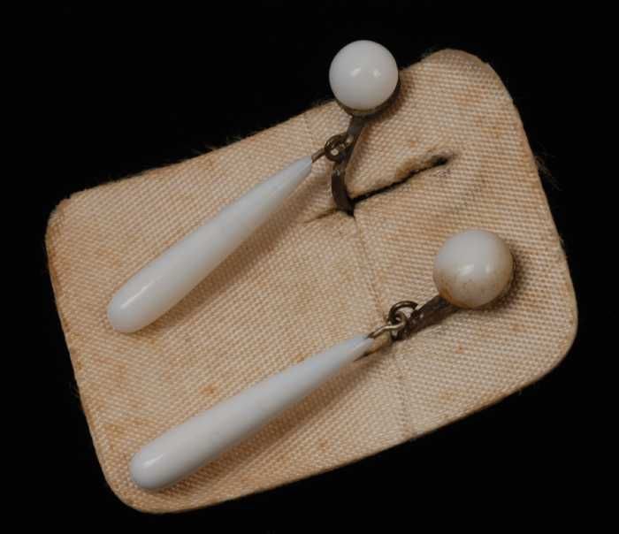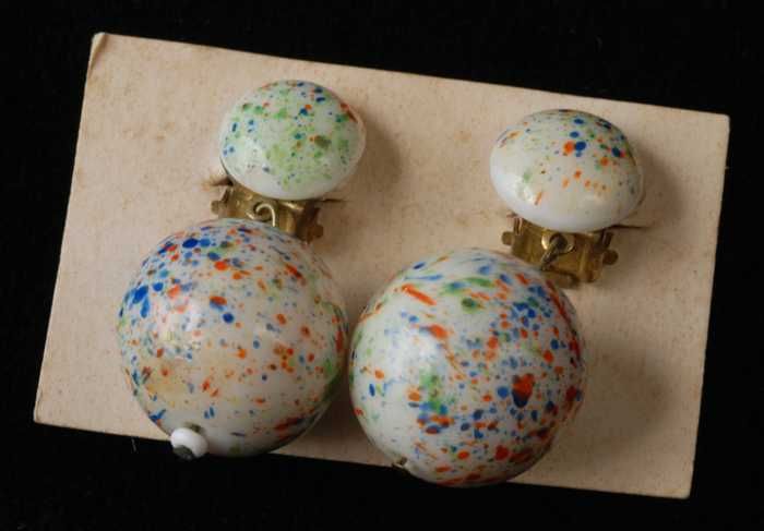Paar oorbellen, clips met wit glazen bollen met gekl...