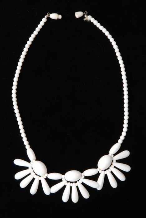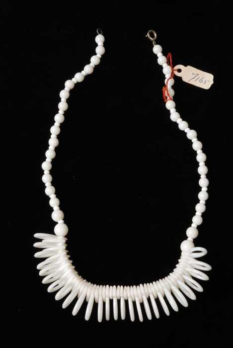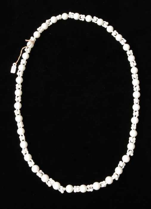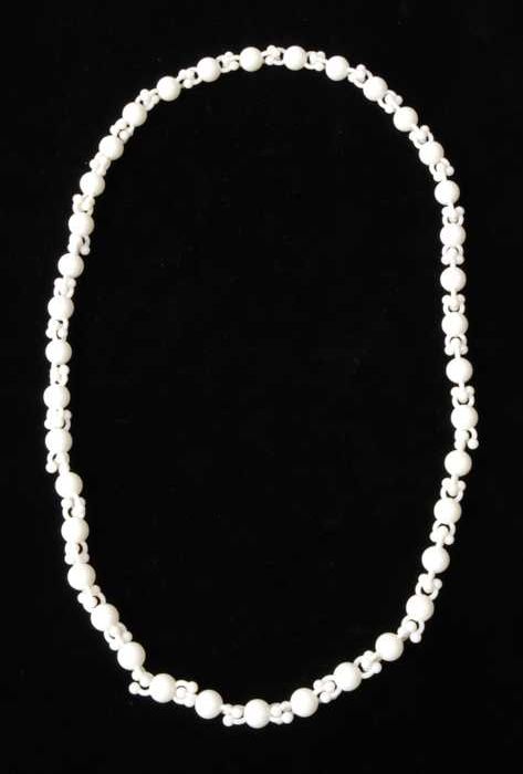 Halsketting, snoer van staafjes wit plastic imitatie...