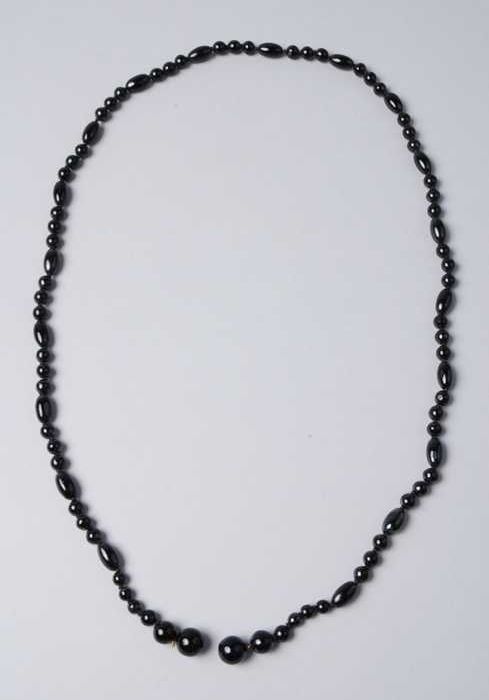 Halsketting, snoer van zwart glazen kralen, in maat ...