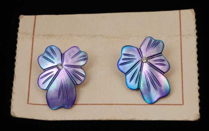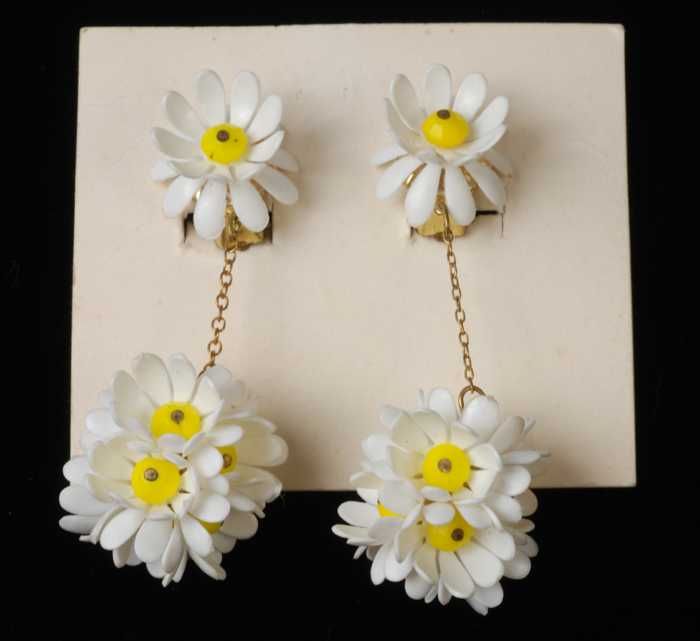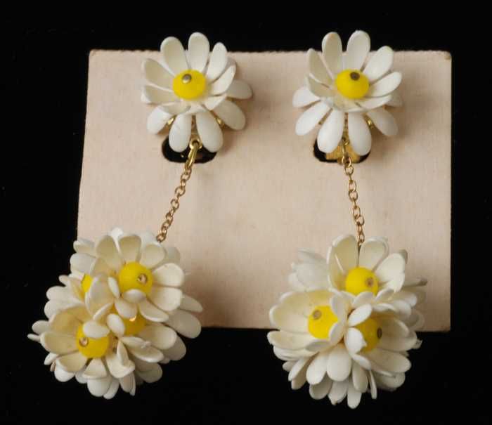 Paar oorbellen, clips met witte plastic pegels met s...
