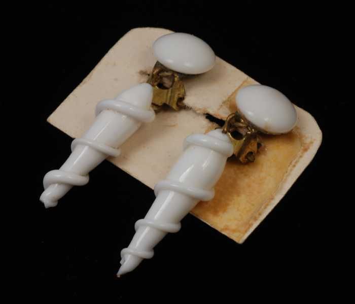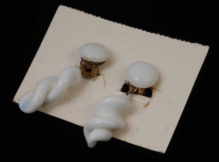 Paar oorbellen, clip met gedraaide pegel van wit gla...