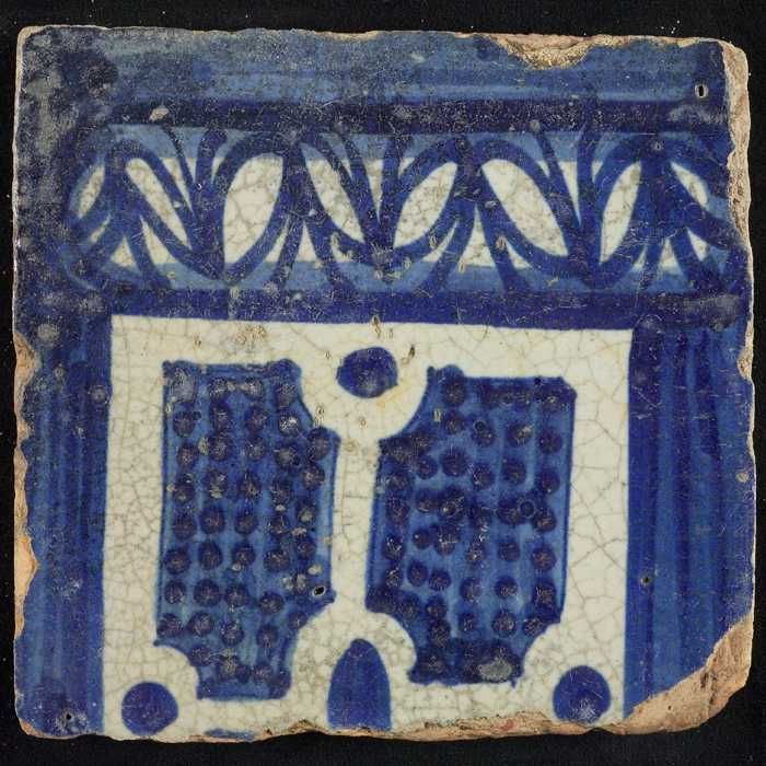 Tegel van schoorsteenpilaster, blauw op wit, onderzi...