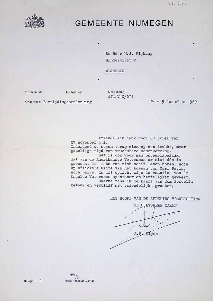 Brief van gemeente Nijmegen (A.F. Uijen) aan M.J. Ni...