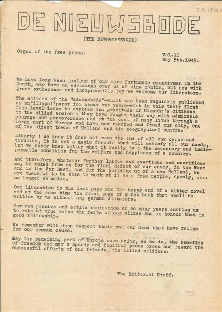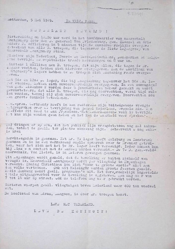 De Vrije Pers ( Rotterdam ), De Vrij Pers, 5 Mei 1945