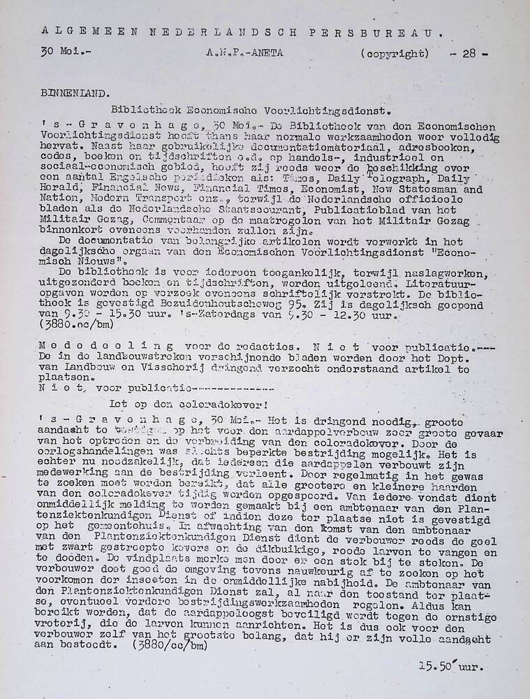 Algemeen Nederlandsch Persbureau, mededelingen, 30 m...