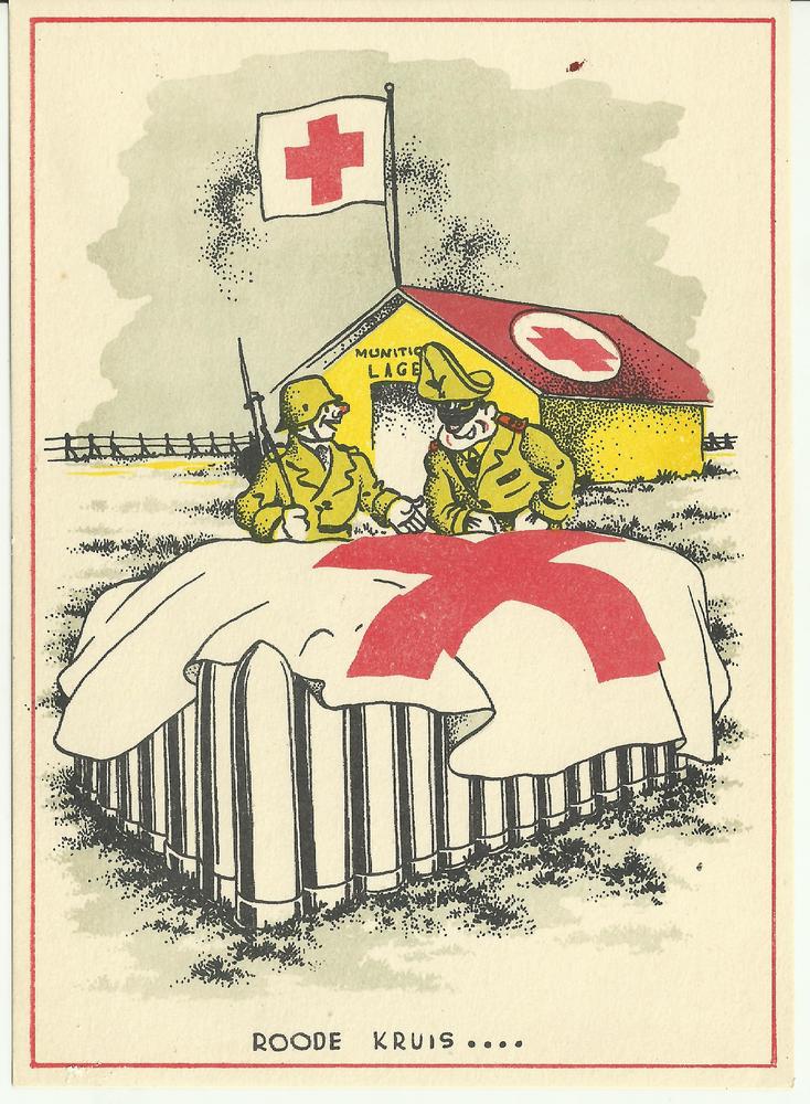 geïllustreerde kaart met een tekst, Roode Kruis ....