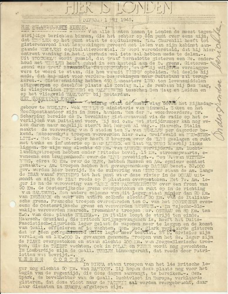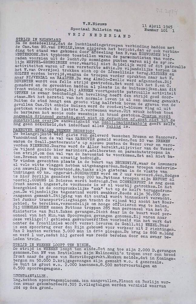 V N Nieuws, Speciaal bulletin, No. 101, 11 April 1945