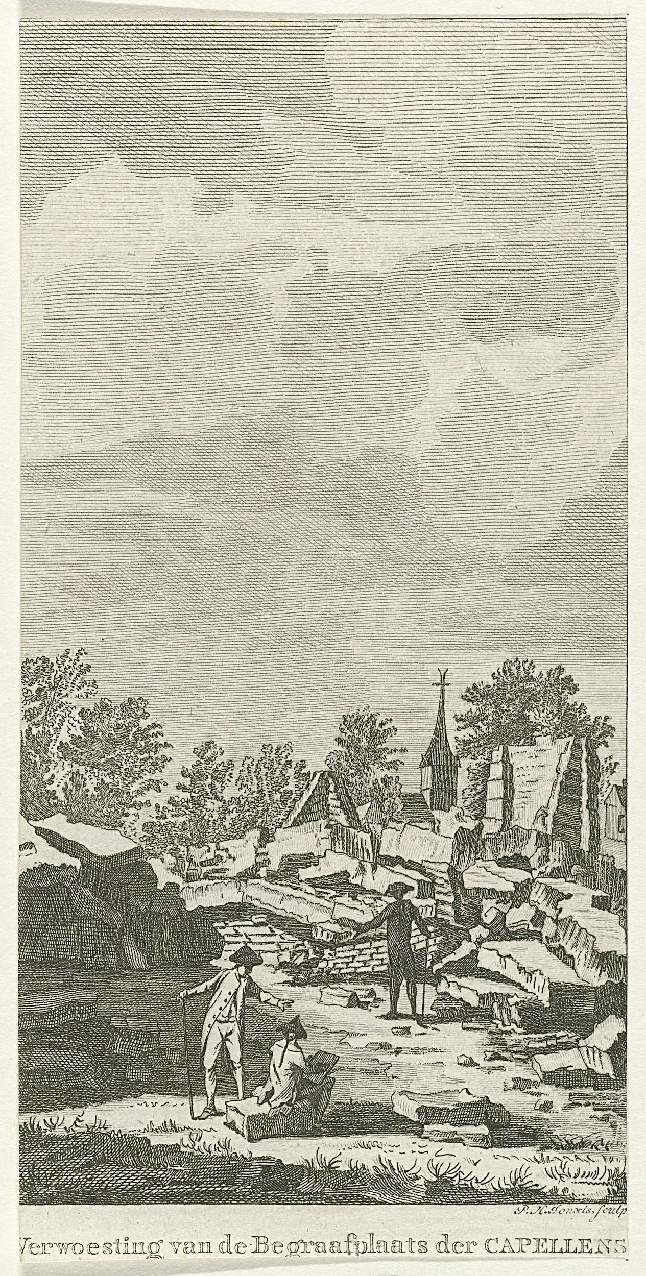 Medaillon met de ruïne van de begraafplaats van de f...