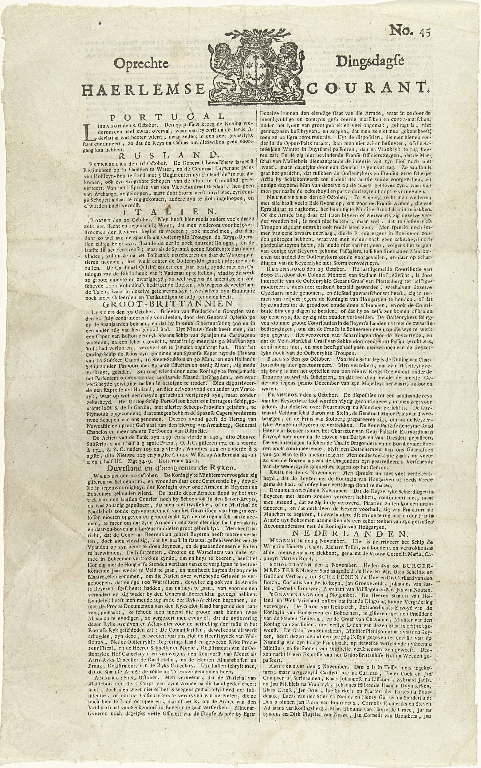 Oprechte Haerlemse Courant, 1742