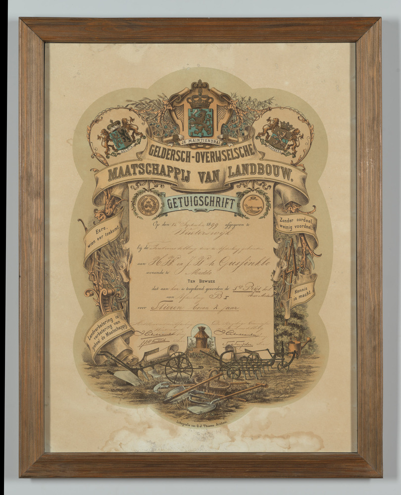 Getuigschrift van de Geldersch Overijselsche Maatsch...