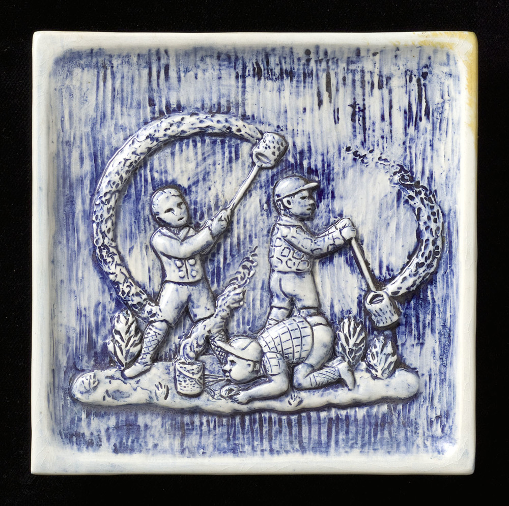 tegeltableau van aardewerk in onderglazuur, voorstel...