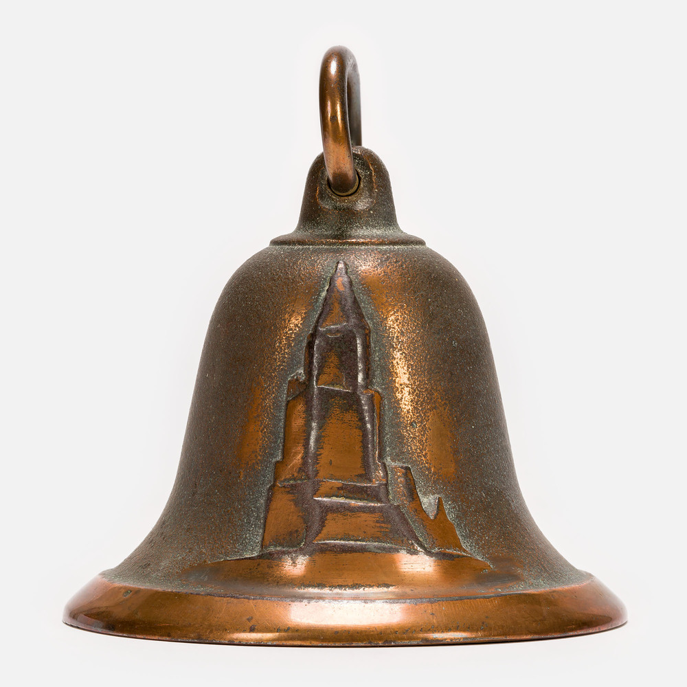Klok (bel) met afgebeeld de kerktoren van de Sint-Eu...