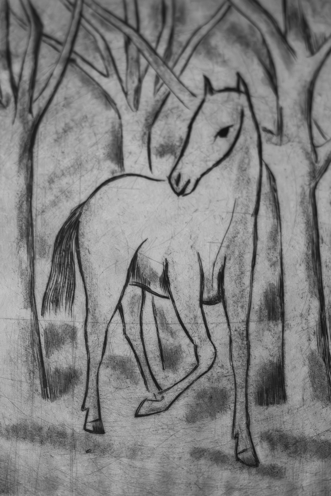 Paard in landschap met bomen