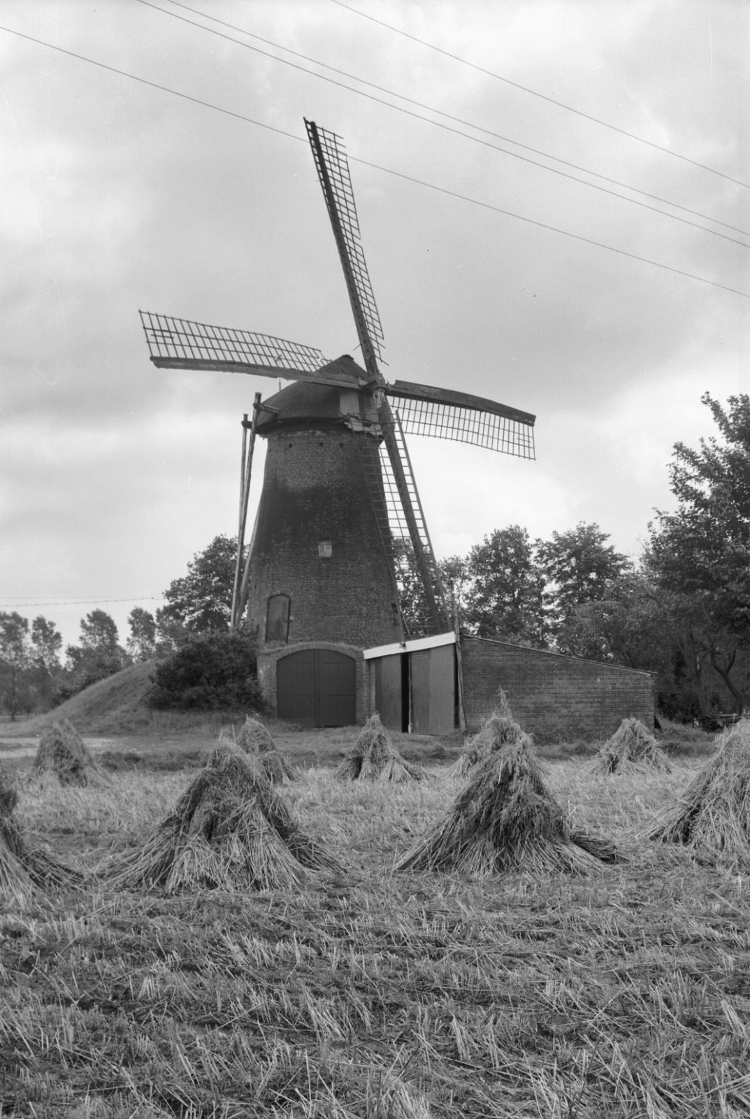 Ronde stenen beltmolen schuin van voren gefotografeerd