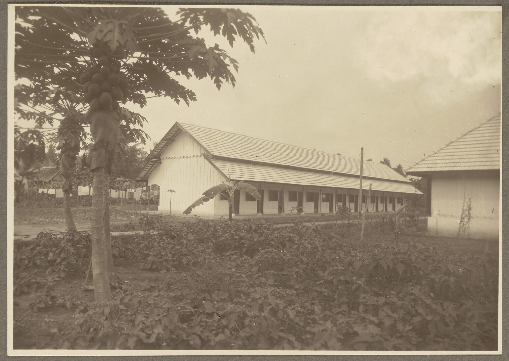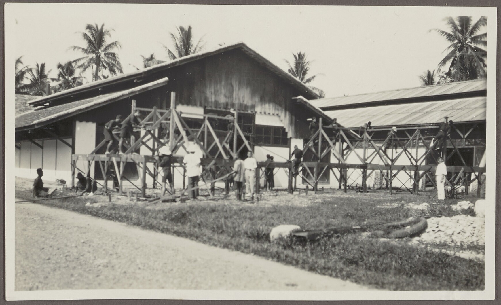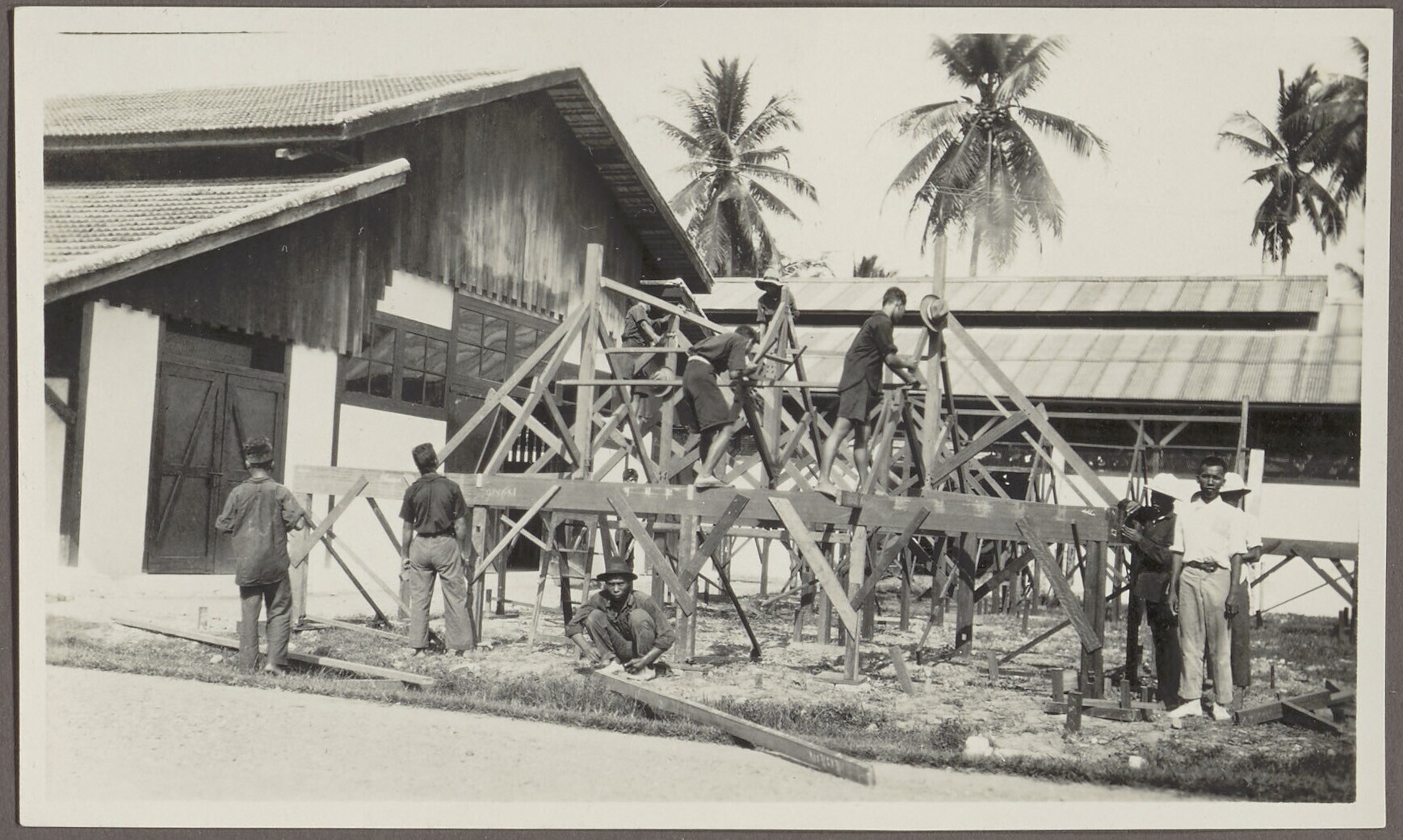Bouw van de 'Ambachtsschool voor Inlanders' in Pemat...