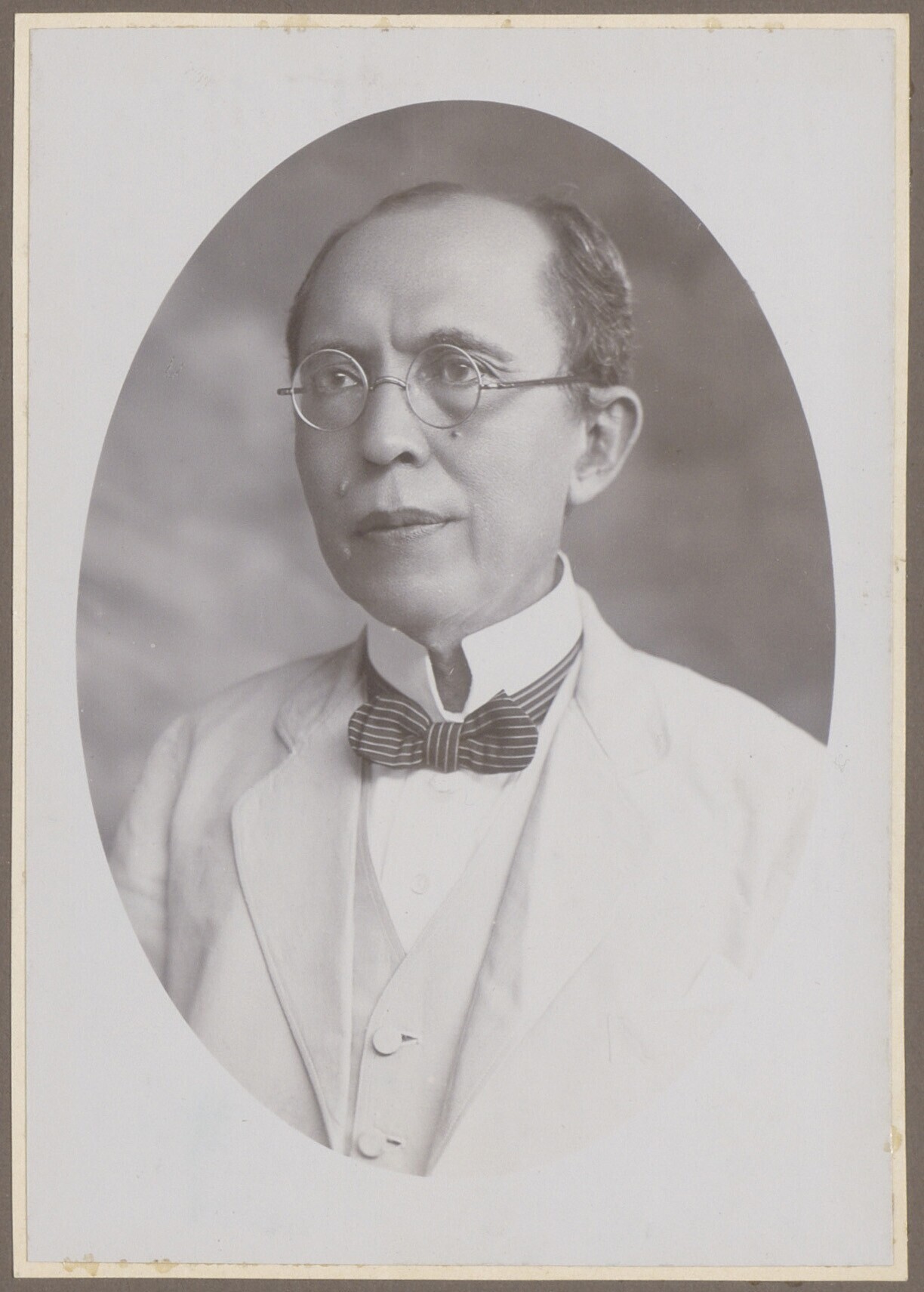 Groepsportret van bestuursambtenaren en leraren tijd...