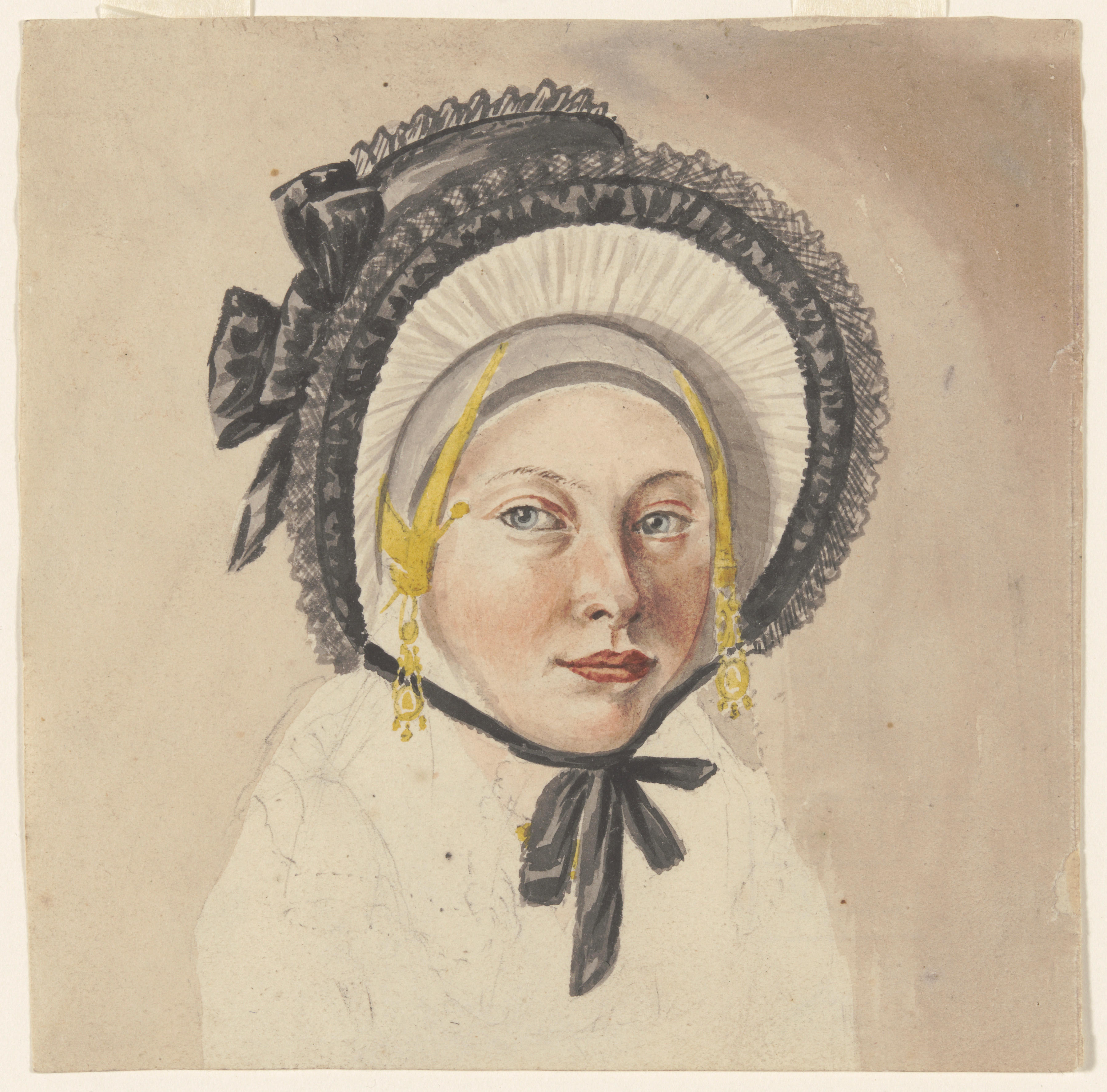 Aquarel van vrouw met hoed, vermoedelijk Zuid-Hollan...