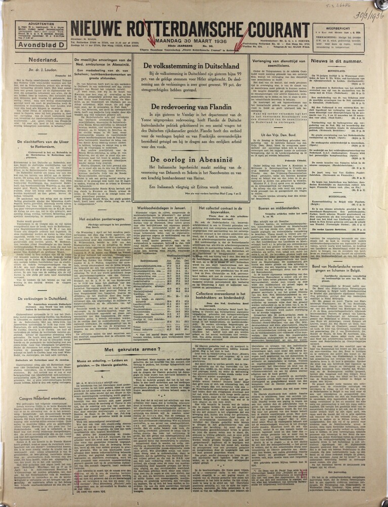 Nieuwe Rotterdamsche Courant. Avondblad. 30 maart 1936.