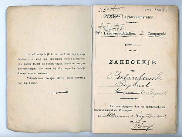 Veldzakboekje van sergeant bij de landweer Raphael B...