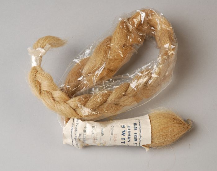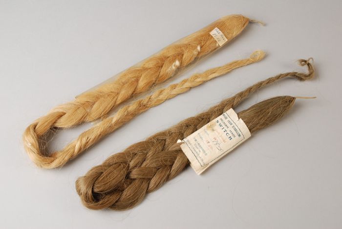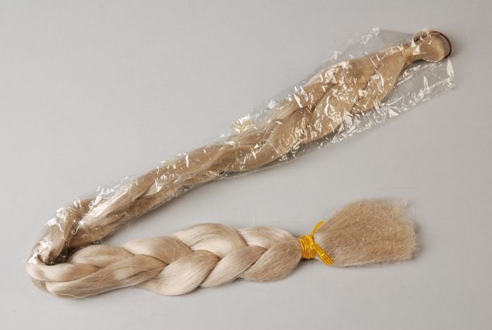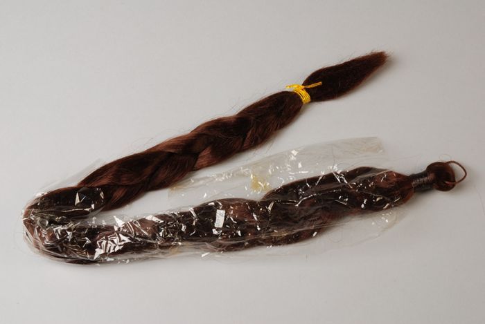 Twee losse haarvlechten van echt mensenhaar (A-B), i...