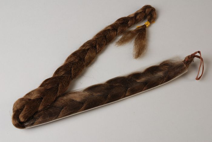 Losse haarvlecht, in twee in elkaar geschoven dozen ...