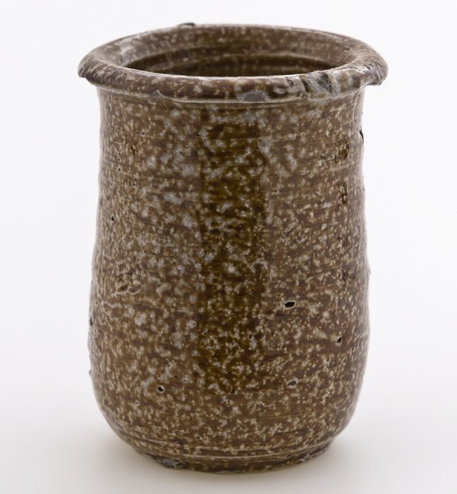 Steengoed zalfpot, cilindrisch met uitstaande rand, ...