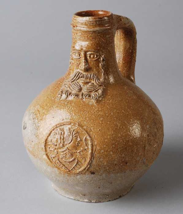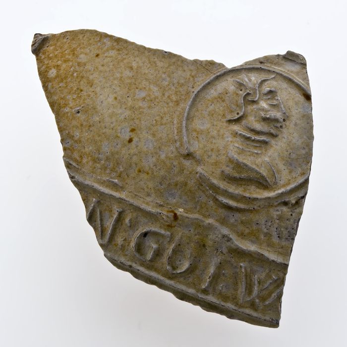 Buikfragment van steengoed kruik versierd met portre...
