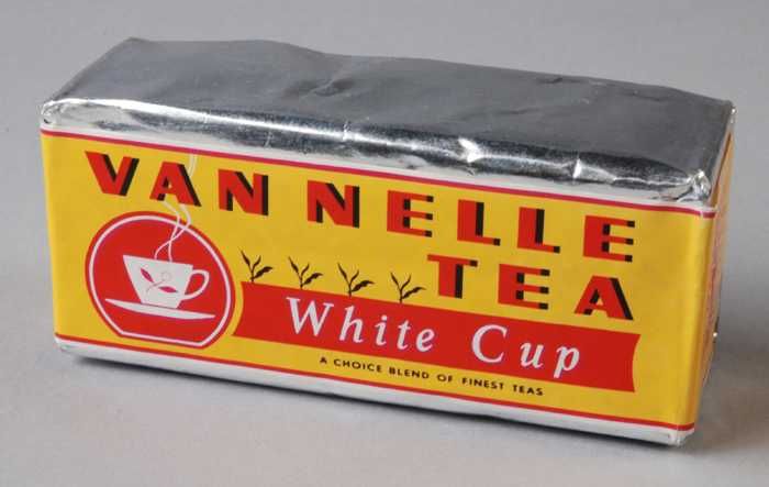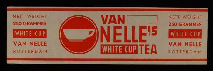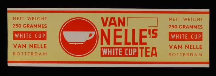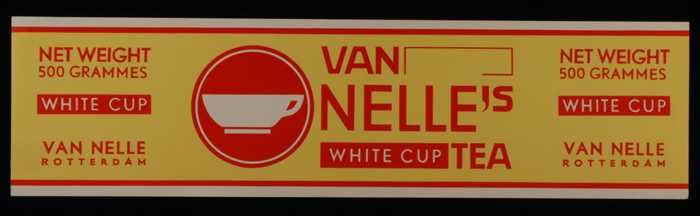 Geel, papieren label VAN NELLE'S WHITE CUP THEE, 500...