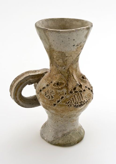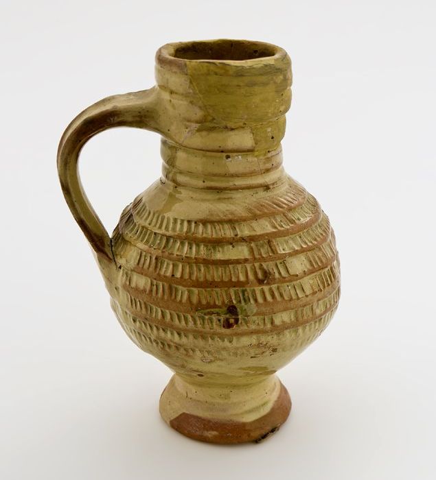 Hals van steengoed kan met twee ribben over de schouder