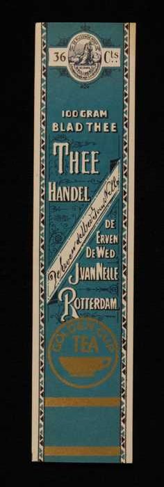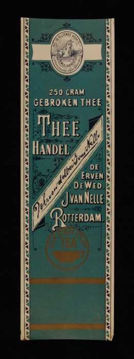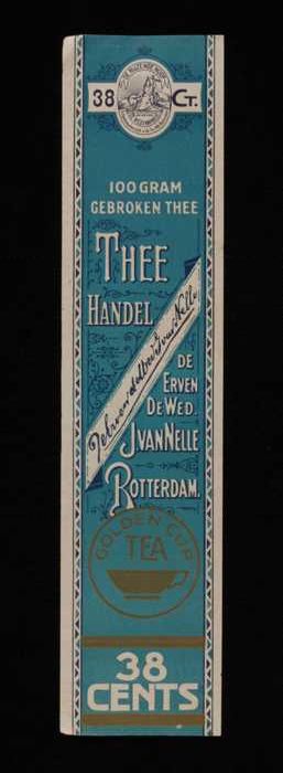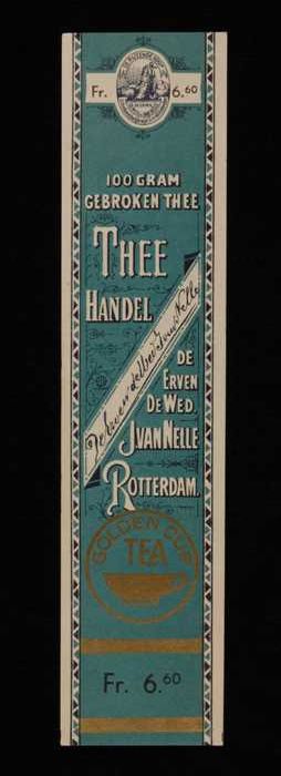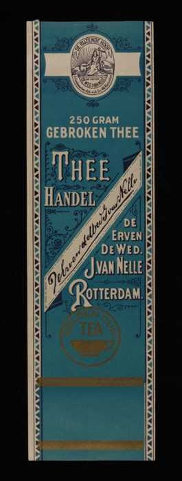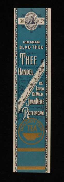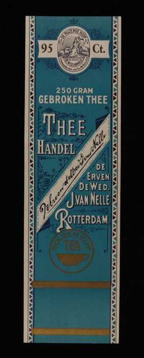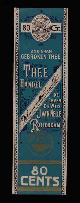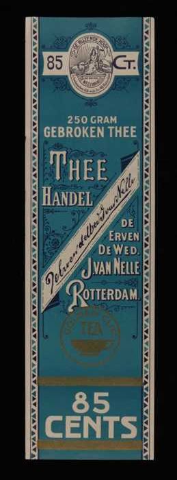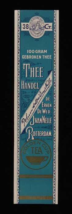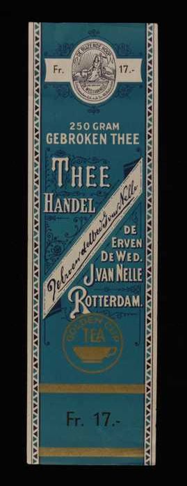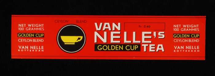 Blauw, papieren label VAN NELLE GOLDEN CUP THEE, bla...