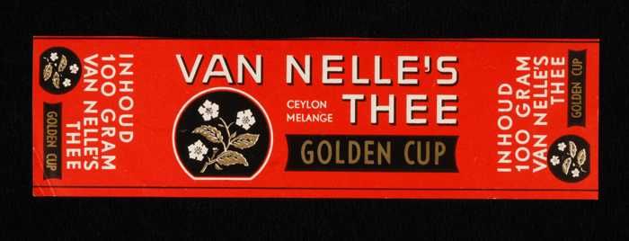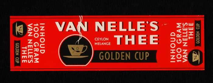 Blauw, papieren label VAN NELLE GOLDEN CUP THEE