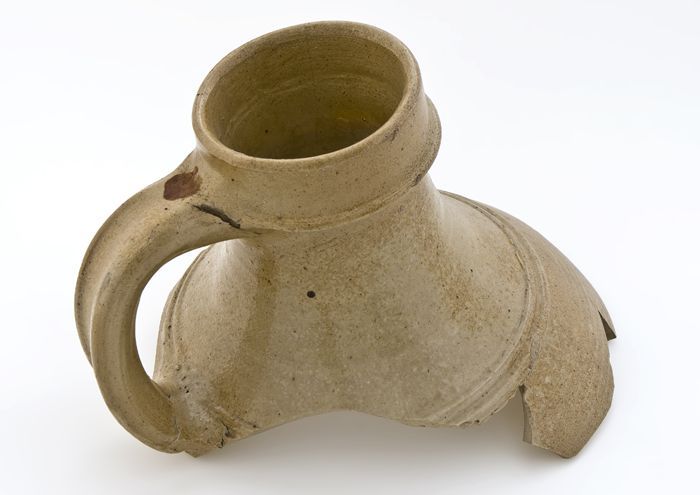 Deel van steengoed drielingbeker op standvoet, drink...