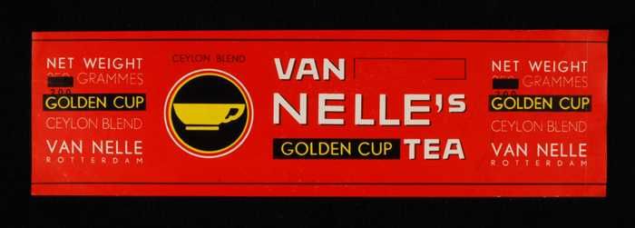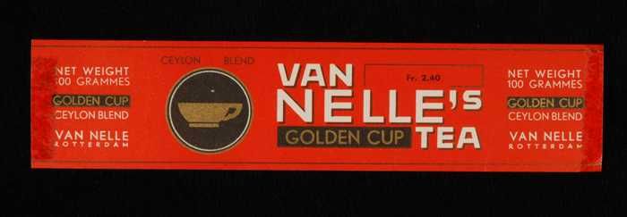 Rood, papieren label VAN NELLE'S GOLDEN CUP THEE, Ce...