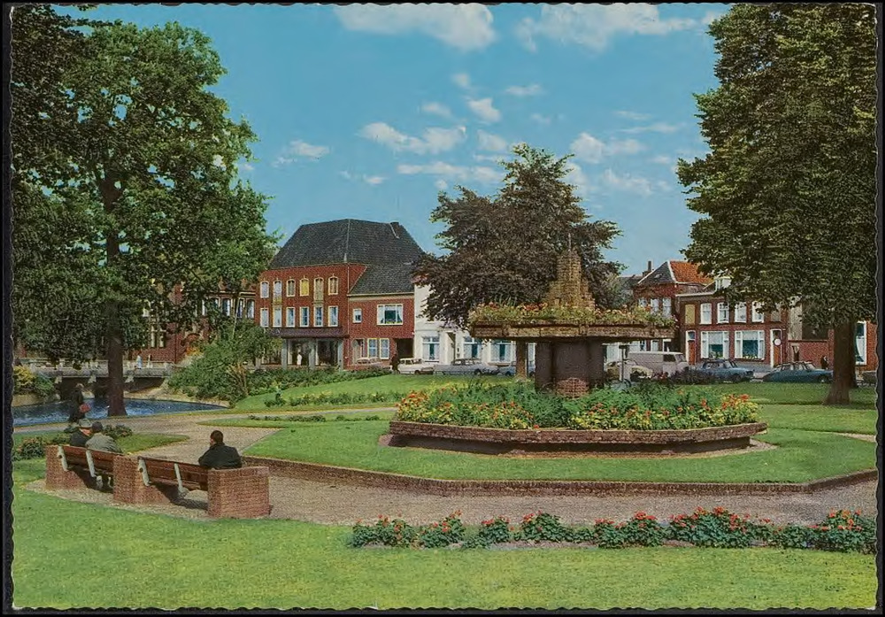 Onder het midden de restanten van de Waterpoort. Van...