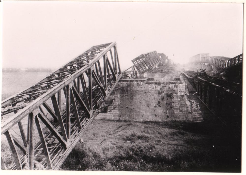 Verwoeste bruggen bij Zaltbommel 1940