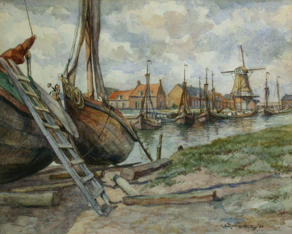 Gezicht op de vissershaven vanaf de Kleine Helling, ...