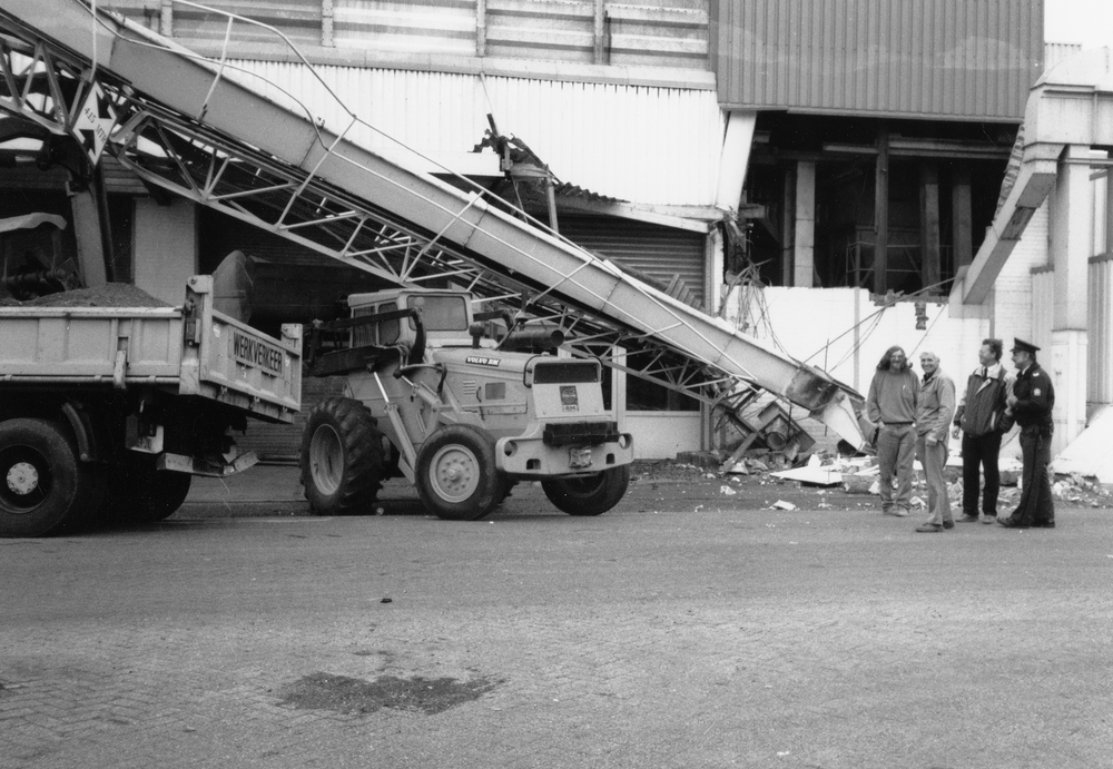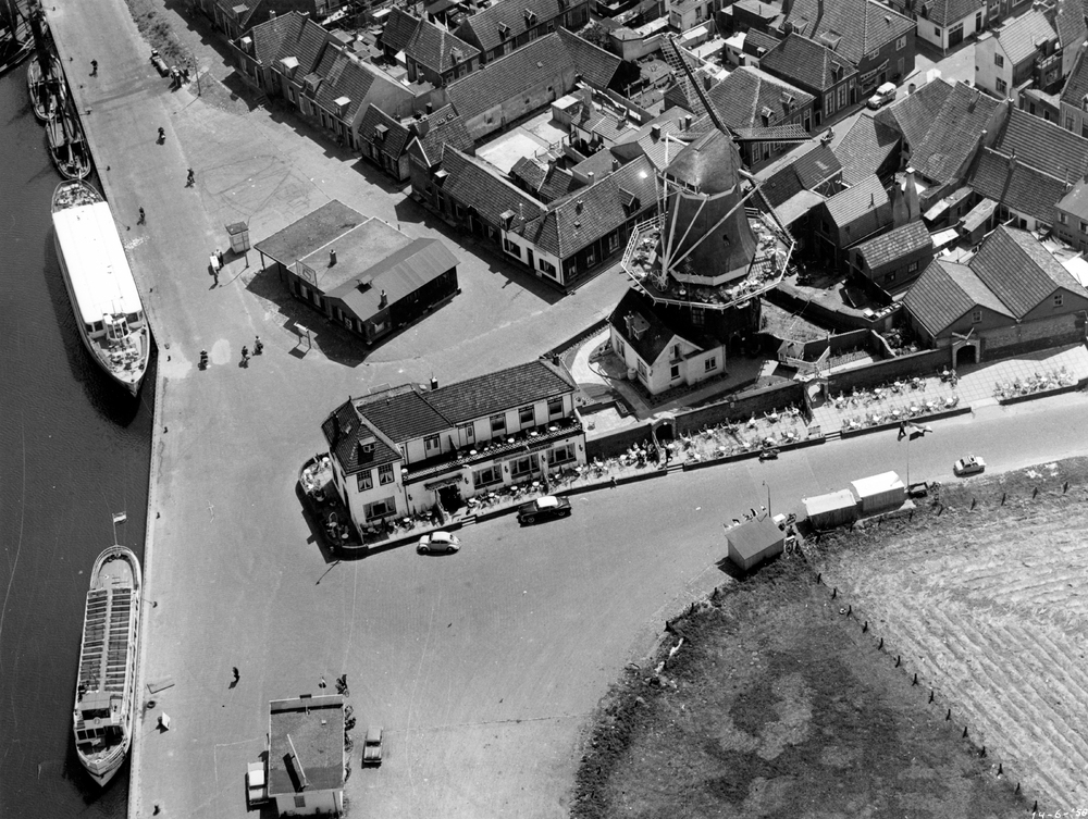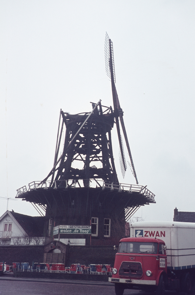De uitgebrande molen 'De Hoop', gezien vanaf de Stra...