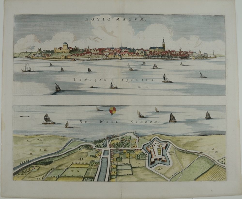 Gezicht op Nijmegen en vogelvluchtgezicht van de ove...