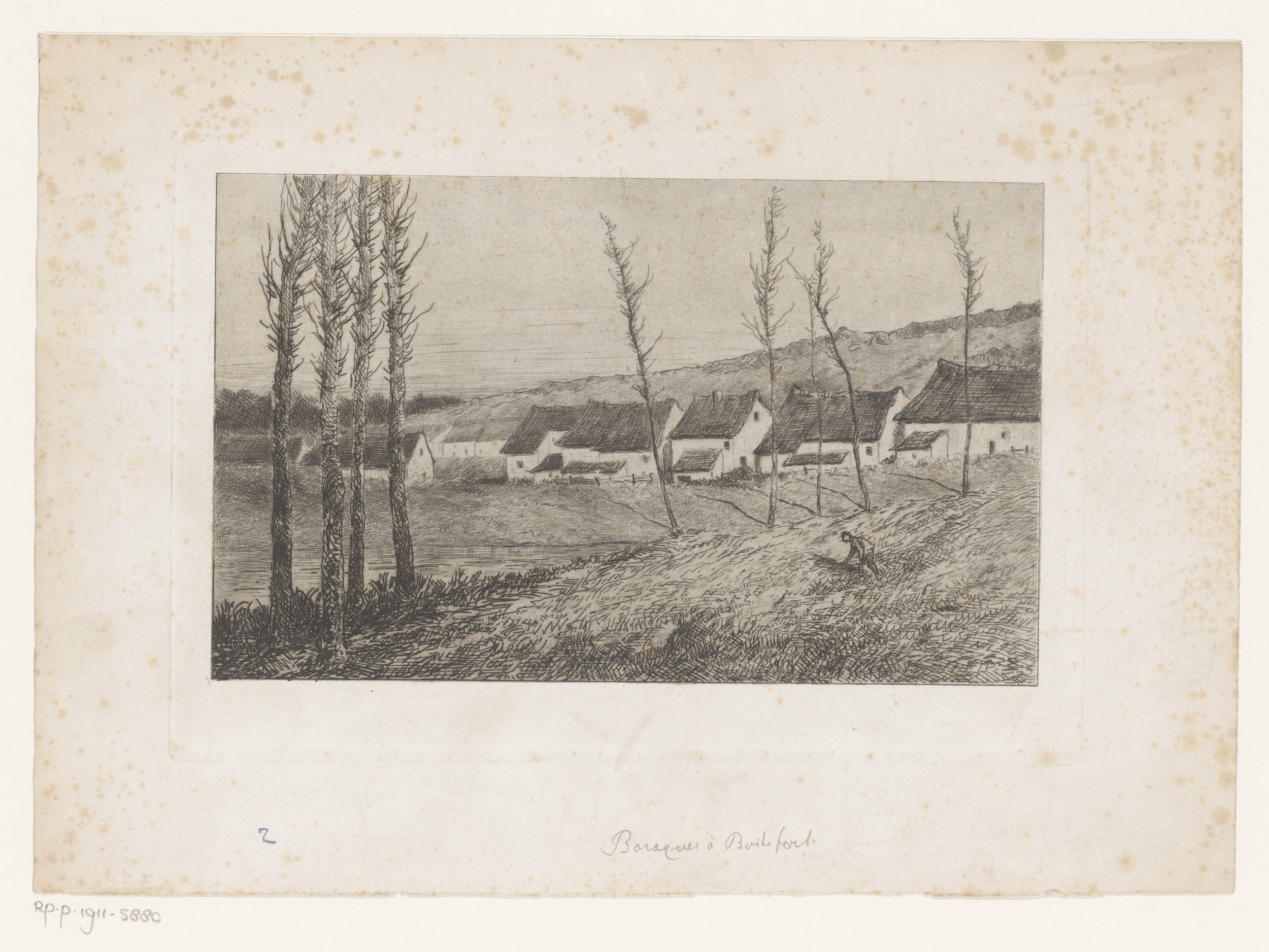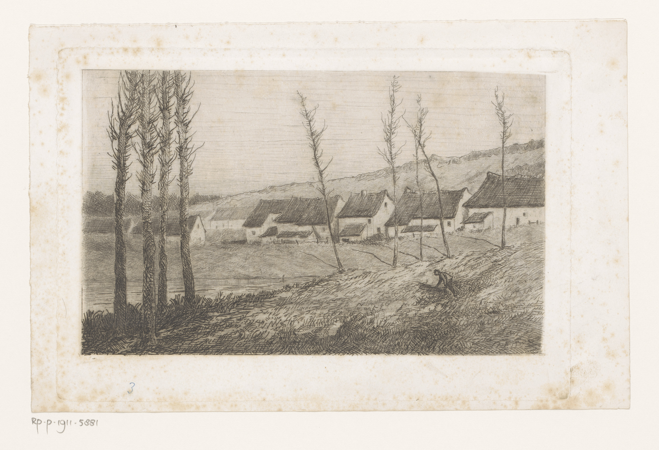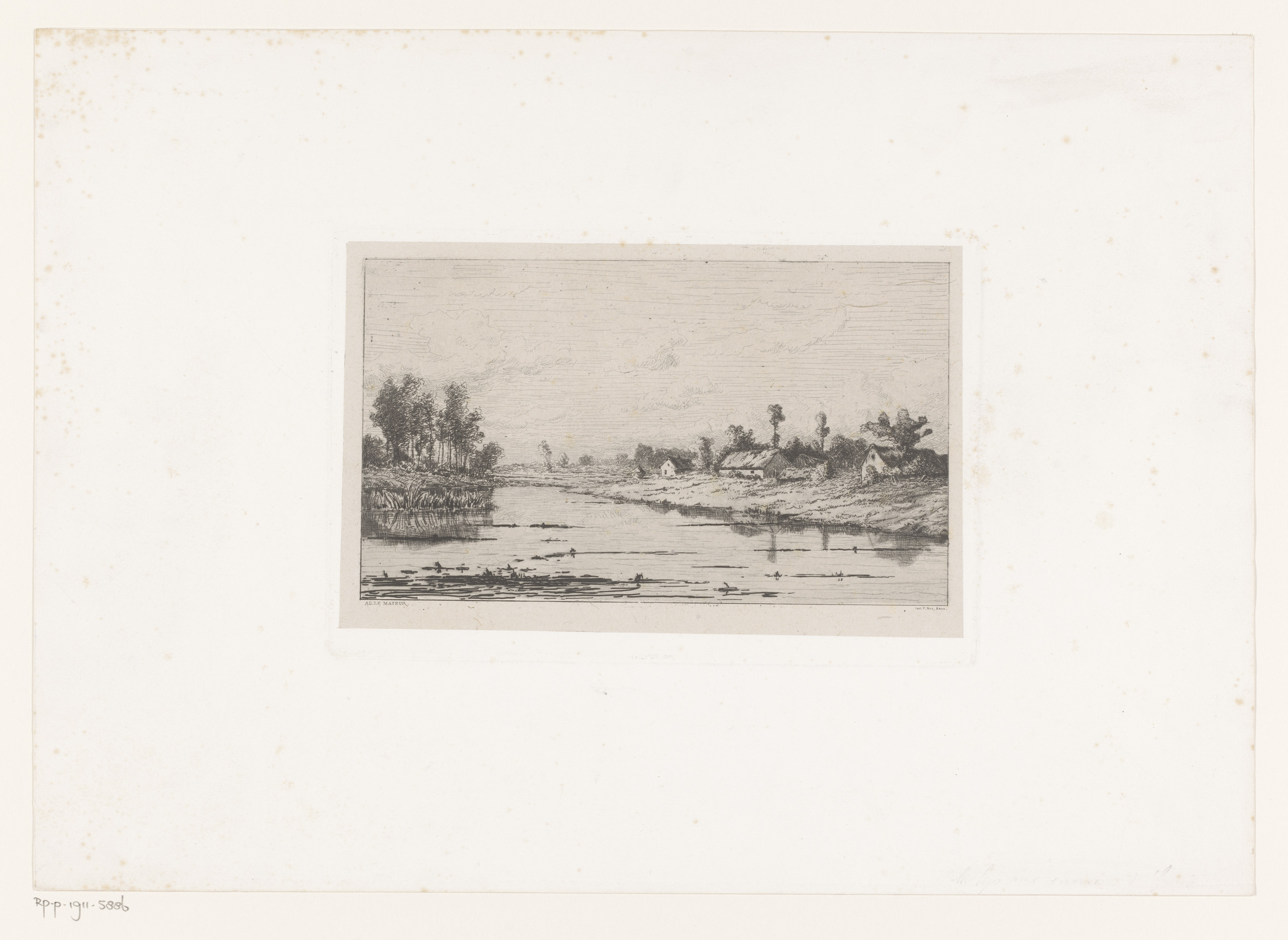 Rivierlandschap met enkele gebouwen