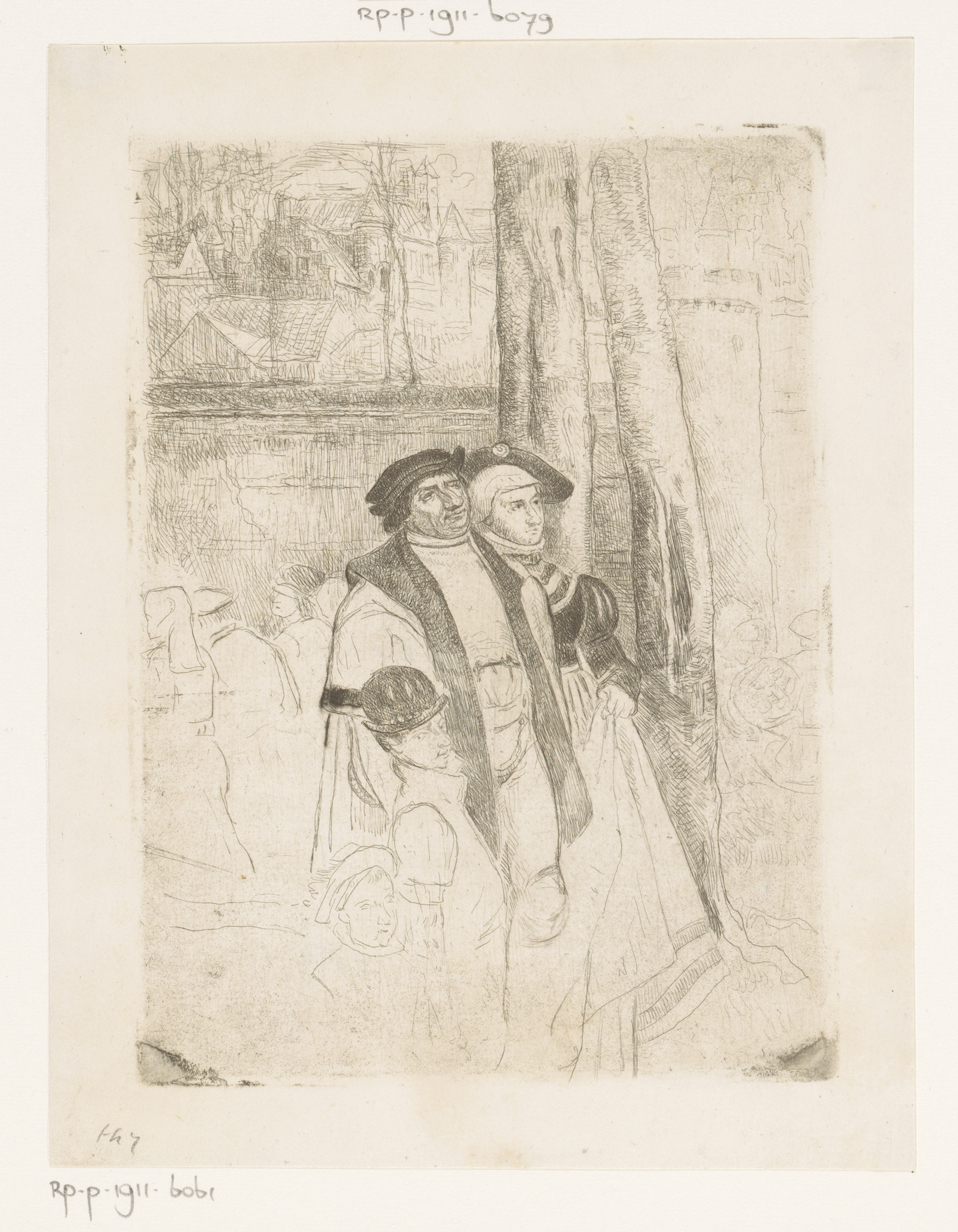Gegoede burgers wandelen door de stad