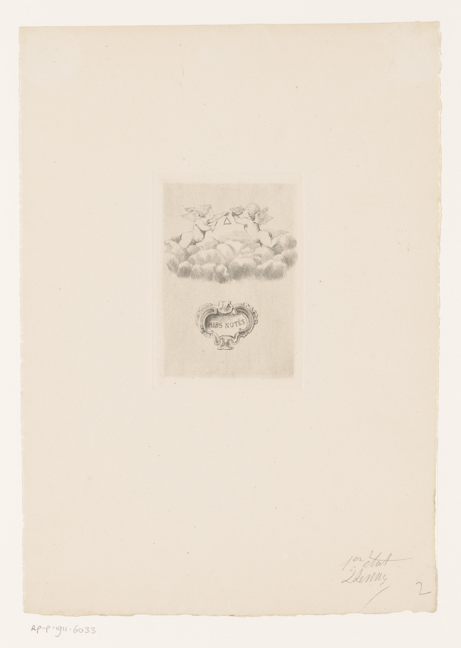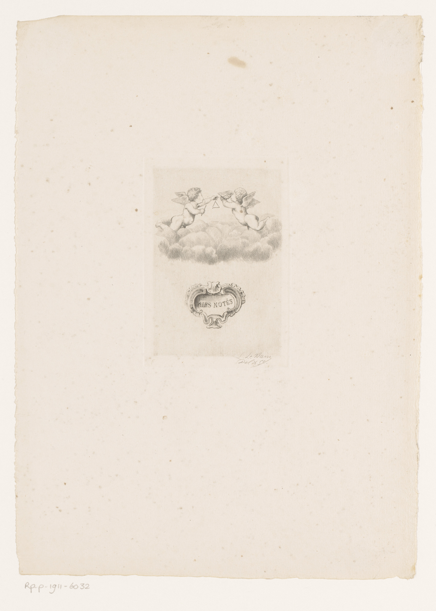 Twee putti met een muziekinstrument op een wolk