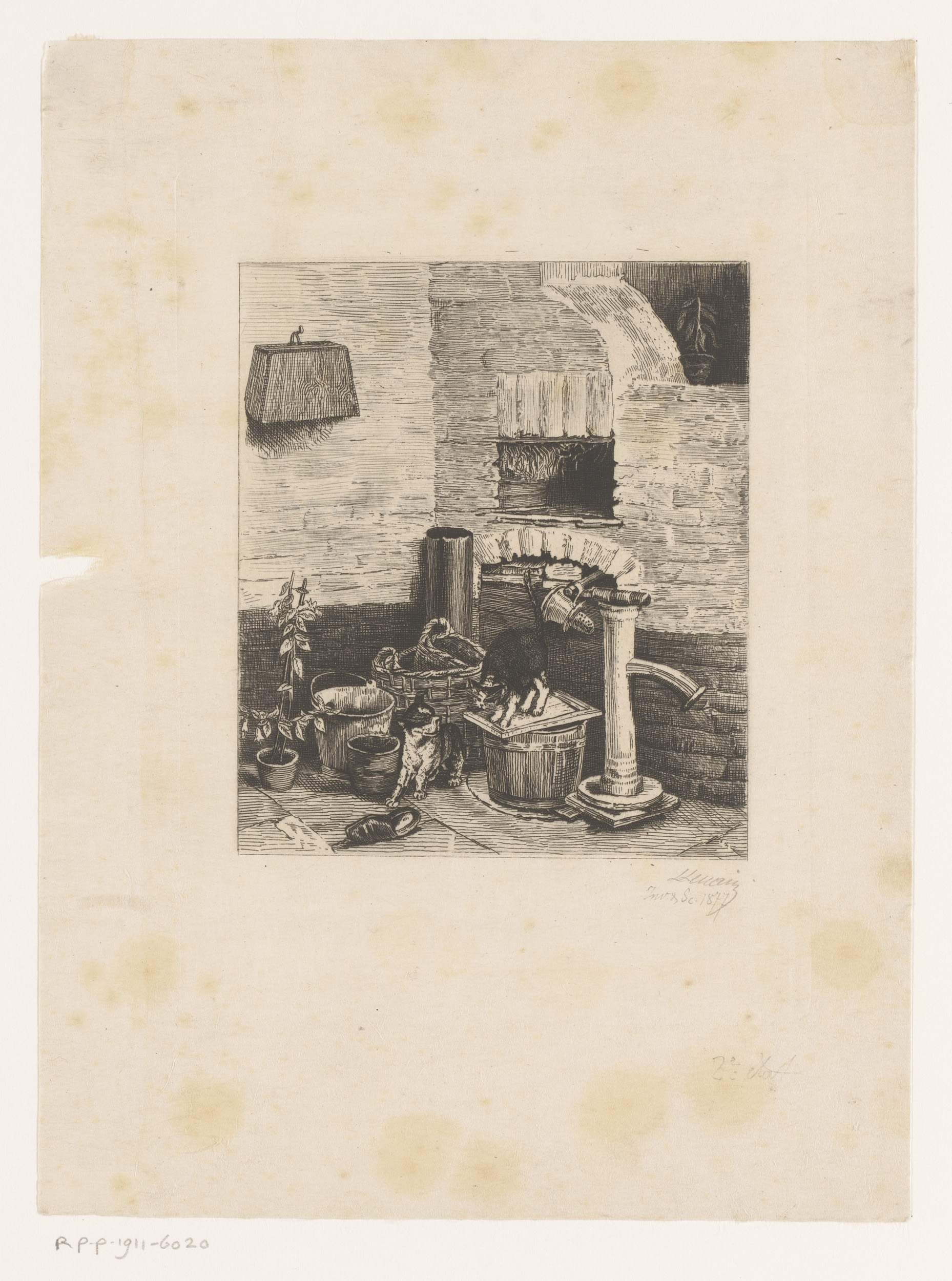 Hond en kat bij een waterpomp